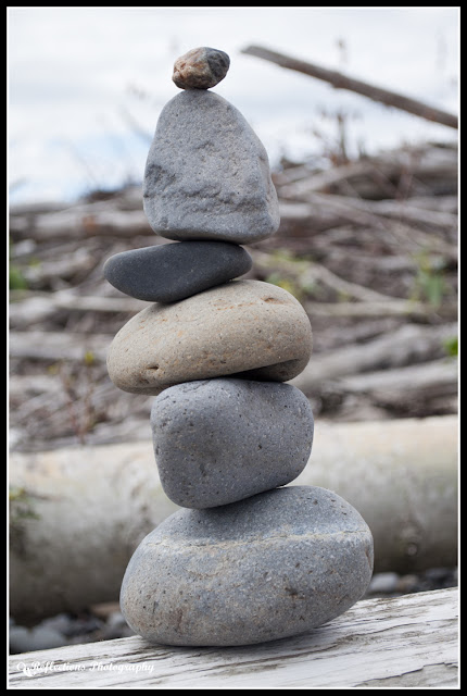 On a log we found a bunch of stone towers, so we decided to build our own and see how tall we could get them.